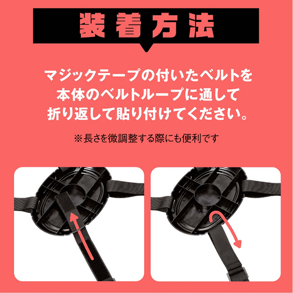 装着周囲74cm〜109cmまで調整が可能です。使用後も拭き取るだけでお手入れ楽々!ベルトを外して水洗いもOKなので汚れ落としが簡単です♪