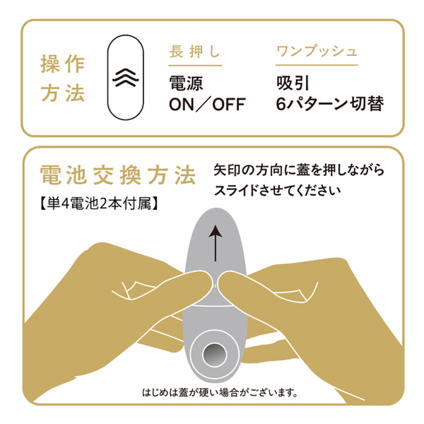 吸引パターンは6パターンを搭載。お好みのパターンで楽しめます。 使用後にさっと洗えて清潔を保てる防水機能付き。 動作音が気にならない静音設計です。 シリコン製のやわらかな吸引口なので押し当てても痛くありません。 しっかり吸引してしっかり気持ちいい。 使い勝手抜群の吸引ローターです。 本体色:ラベンダー IPX6等級_6パターン吸引 静音設計≦45dB 付属品:アルカリ単4電池×2本 ※IPX6:放水ノズルを使って噴流水を最低3分間あてる試験 (浸水は不可となります) 検査番号:2405068 付属品:アルカリ単4電池×2本 本体サイズ:12.3×5.6×4.5cm 重量:86g パッケージサイズ:16×8×4.5cm |