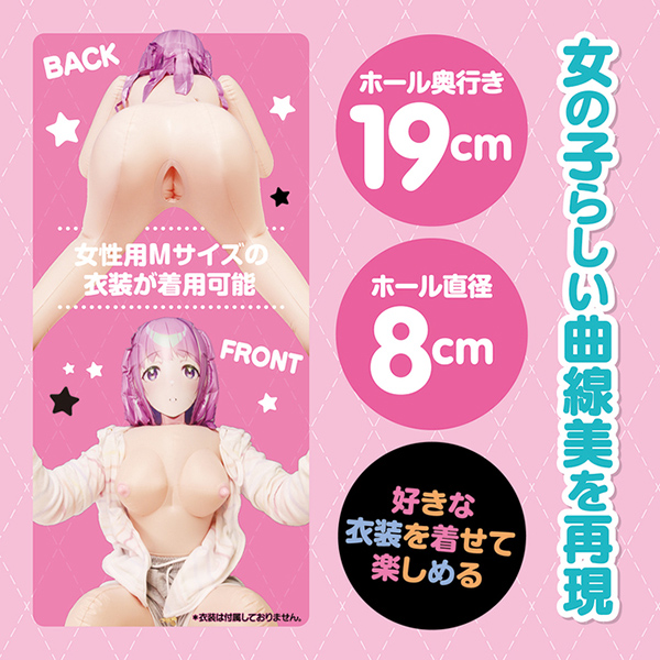 萌え系エアドールの決定版! 可愛らしい2次元プリントエアドール 抱き心地抜群! 女の子らしい曲線美を再現、女性用Mサイズの衣装が着用可能、好きな衣装を着せて楽しめます。 ハメやすい究極のポージング お尻を突き出すポーズがエロすぎる後背位タイプ★ 小型ホールから中型ホールまでほとんどのオナホールが装着可能 バスト:80cm ウエスト:62cm ヒップ:98cm イラスト:柳々 ※衣装は付属しておりません。 パッケージサイズ:23×20×10cm 本体重量:350g |